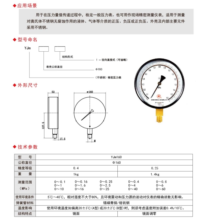 * 表示必填采购:精密压力表