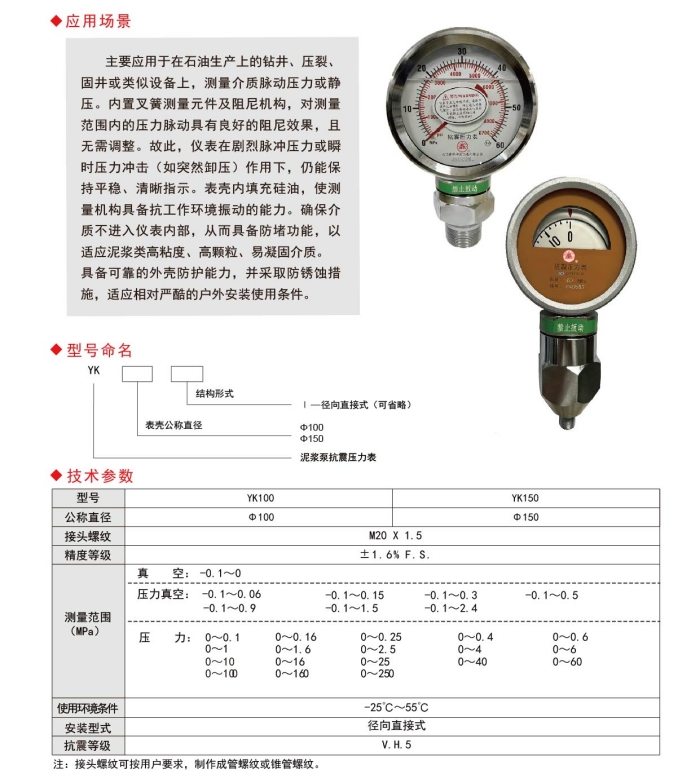 * 表示必填采购:泥浆泵抗震压力表